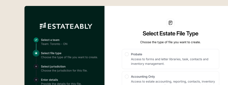 Estate professionals can now send secure intake forms directly to executors via email with password protection, allowing executors to submit all deceased information, beneficiaries, executors, assets, and liabilities through a guided web interface that imports directly into Estateably. Eliminates manual data entry, reduces back-and-forth communication, and gives executors a self-paced submission experience - because nobody enjoys playing phone tag about asset details.